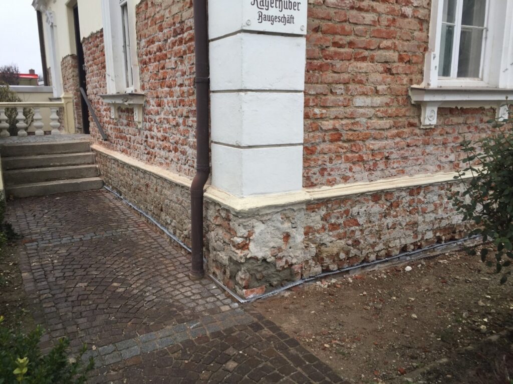Naše Partnerské společnosti pro další sanační kroky, jako je napojení vodorovné bariéry na stávající hydroizolaci, doprovodná opatření na zdivu během vysychání a nové omítky.